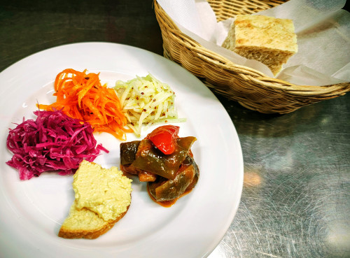 ※写真は野菜の前菜と自家製パンのイメージ
